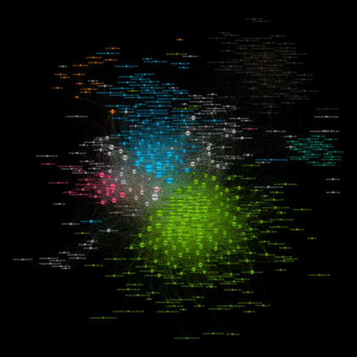 What can we see? If English-speaking instances are ignored, German, French and Japanese languages are most common across Mastodon. Japan and Korea don’t hang around much with other folks, while French, German and Spanish instances are quite interconnected between each other.