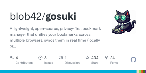 I would like to showcase Gosuki: a multi-browser cloudless bookmark manager with multi-device sync capability, that I have been writing on and off for the past few years. It aggregates your bookmarks in real time across all browsers/profiles and external APIs such as Reddit and Github.