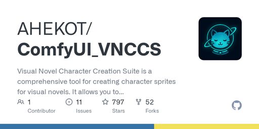arrow-up11arrow-down1external-linkAHEKOT/ComfyUI_VNCCS: Visual Novel Character Creation Suite is a comprehensive tool for creating character sprites for visual novelsgithub.comEven_Adder@lemmy.dbzer0.comM to Stable Diffusion@lemmy.dbzer0.comEnglish · 6 months agomessage-square0linkfedilinkcross-posted to: stable_diffusion@lemmy.dbzer0.comstable_diffusion@lemmy.dbzer0.com