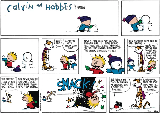 Could be wrong, but I don’t remember ever seeing Hobbes call Calvin by his name before. Feels a bit weird for some reason.