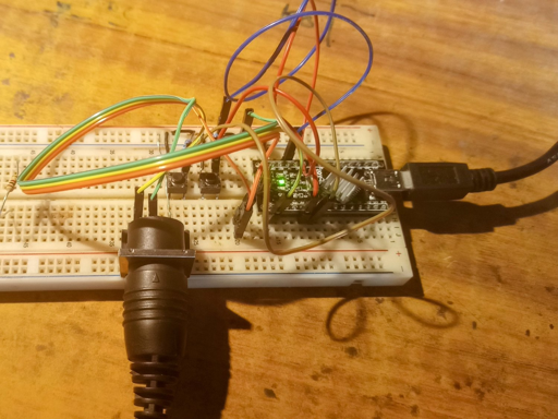 Little update: Got it soldered on rasterboard and integrated into my rack, powered by my pedalboard’s isolated ten line-PSU (thanks to individually settable voltages) and running as intended. Just to realize that I’ll need an option to send CC#28 (bypass on/off). I’ve implemented it as “both switches on” (I just had to rewrite the better part of the input routine for it - 2 bits representing D2 and D3 instead of clumsy if-then- else clauses) and am just about to take the whole thing apart to connect the SPI programmer. Might just drill another hole or better extend the ISP header to the outside for easier firmware upgrades- I am afraid that “simple two afternoons job” is about to become one of these projects unless I’ll stand strong against the persuasions of feature creep. If anyone is interested I can upload wiring diagram and code as soon as the last change is tested and working.