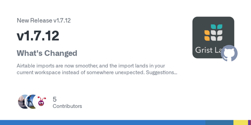 arrow-up133arrow-down1external-linkGrist (spreadsheets) v1.7.12 adds Automationsplus-squaregithub.comray@lemmy.ml to Selfhosted@lemmy.worldEnglish · 15 days agomessage-square3linkfedilink